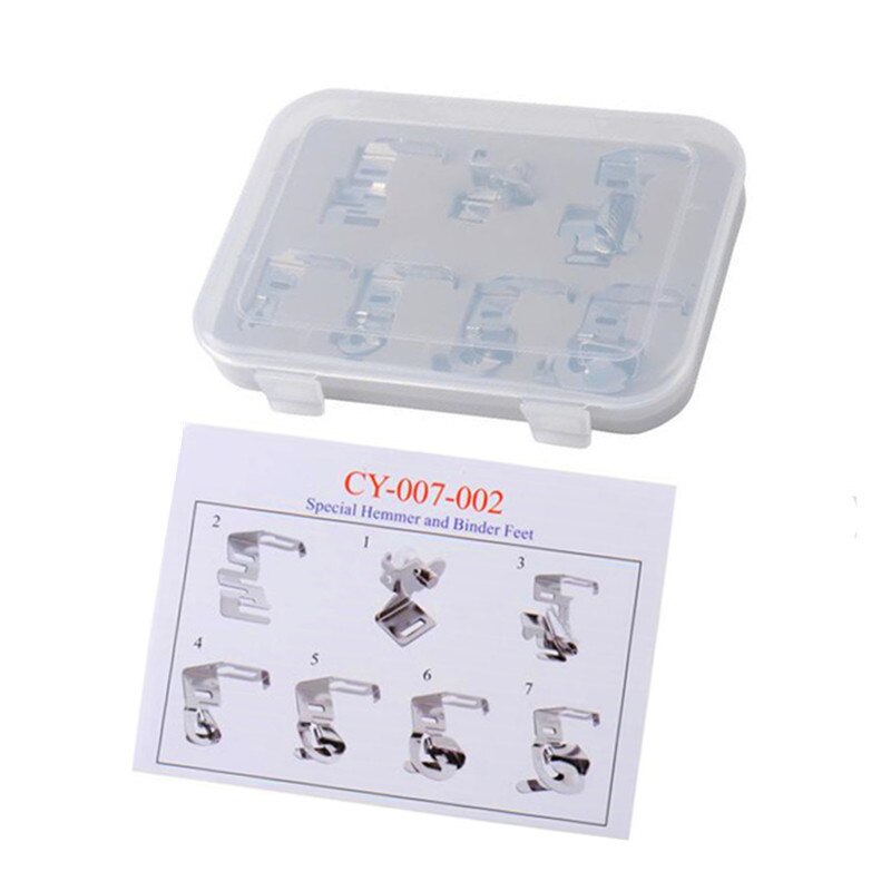 1. Diverse Set of Feet: This set includes seven different presser feet, each designed for specific tasks such as bias binding, rolled hems, edge stitching, and more. With various widths and functions, you'll have the right tool for every sewing project.