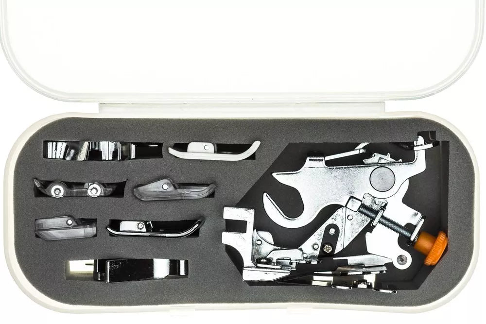 Upgrade your sewing experience with the 8-Piece Standard Feet Set with Ruffler. Whether you're a garment maker, quilter, or craft enthusiast, this kit offers a versatile selection of presser feet, including the valuable Ruffler Foot, to enhance your sewing capabilities. Expand your creative horizons, save time, and achieve exceptional results in your sewing projects. Enhance your sewing toolkit today and explore new creative possibilities with these essential presser feet.