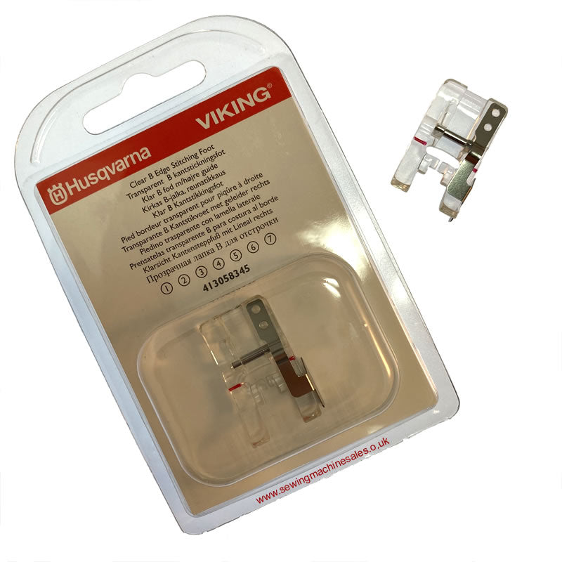 Whether you're quilting, adding embellishments, or simply aiming for clean and well-defined edges on your sewing projects, the Husqvarna Viking Clear B Edge Stitching Foot is an essential addition to your sewing toolkit. It makes edge stitching a breeze, helping you achieve polished and eye-catching results with your Husqvarna Viking sewing machine.