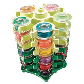 The tower's stackable design makes it convenient to add more storage as your bobbin collection grows. It's a versatile accessory that accommodates various bobbin sizes and styles, making it compatible with a wide range of sewing machines.