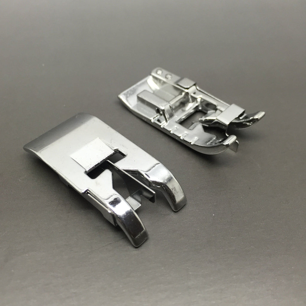 The Stitch in the Ditch Foot with a snap-on mechanism is a specialized presser foot attachment designed to simplify the process of creating precise and professional stitching along seam lines. This versatile presser foot is compatible with sewing machines that feature a snap-on presser foot system.