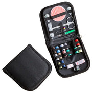 Inside the case, you'll find an assortment of sewing essentials, including needles, threads, scissors, spools, buttons, a thimble, and a mini sewing kit. This well-rounded selection allows you to tackle a variety of sewing and mending tasks while traveling or when you're away from your main sewing setup.